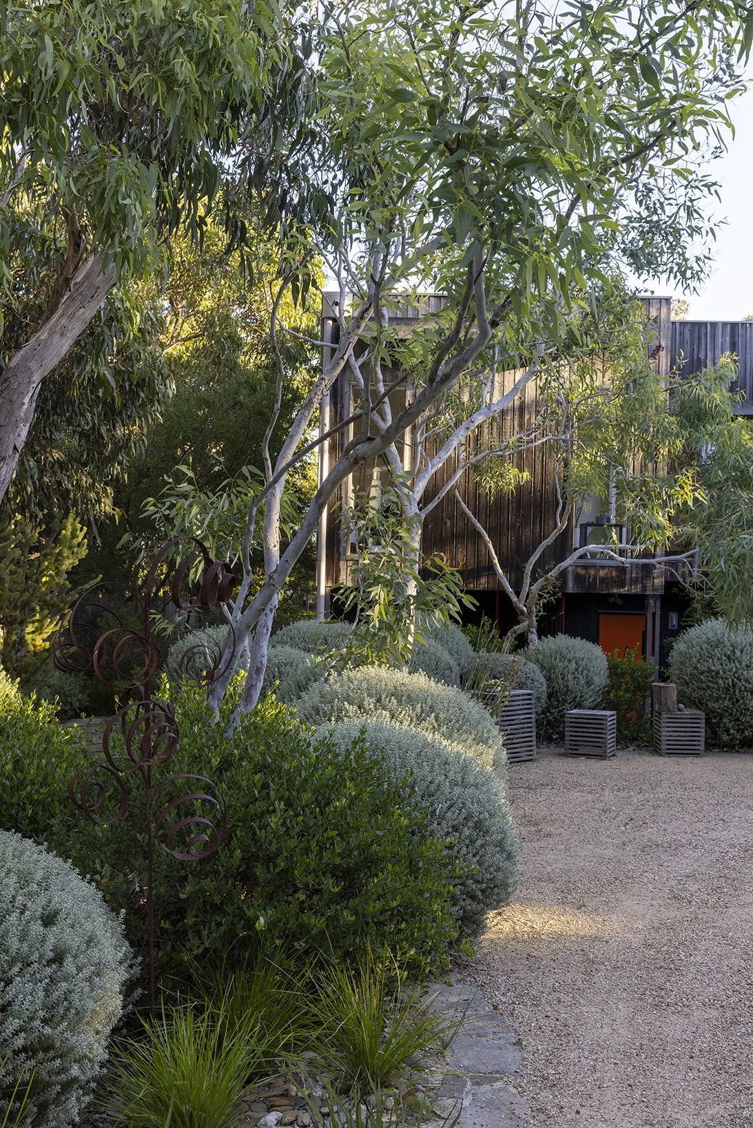 Set amongst mature messmate gums the garden is a model of what can be achieved by retaining existing vegetation and planning a garden and home with minimal impact on the environment.