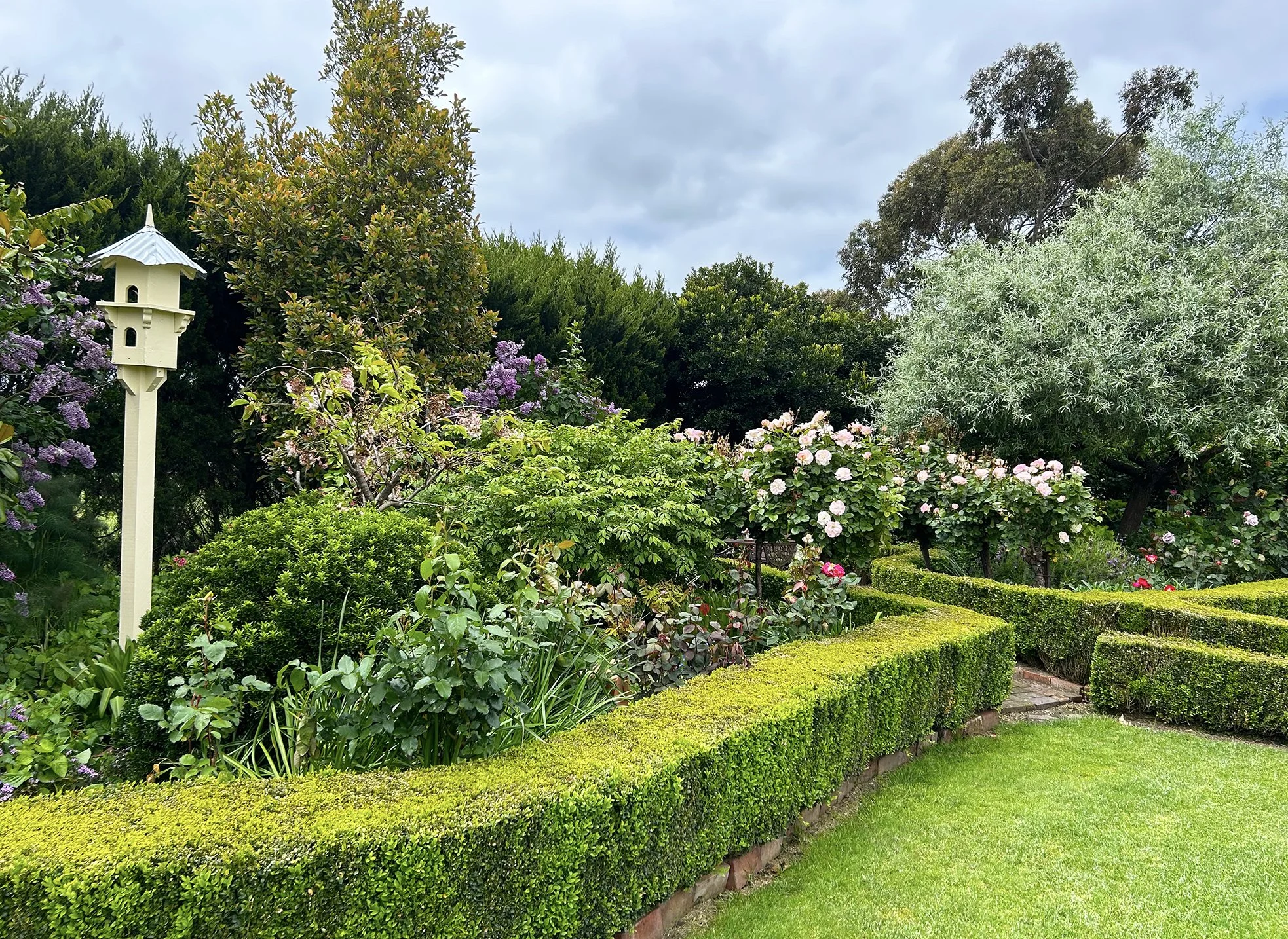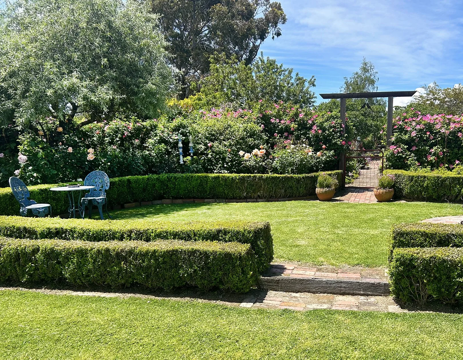 Hanami is a true ‘gardeners garden’ that is overflowing with roses, shrubs and perennials, bordered by box hedging.