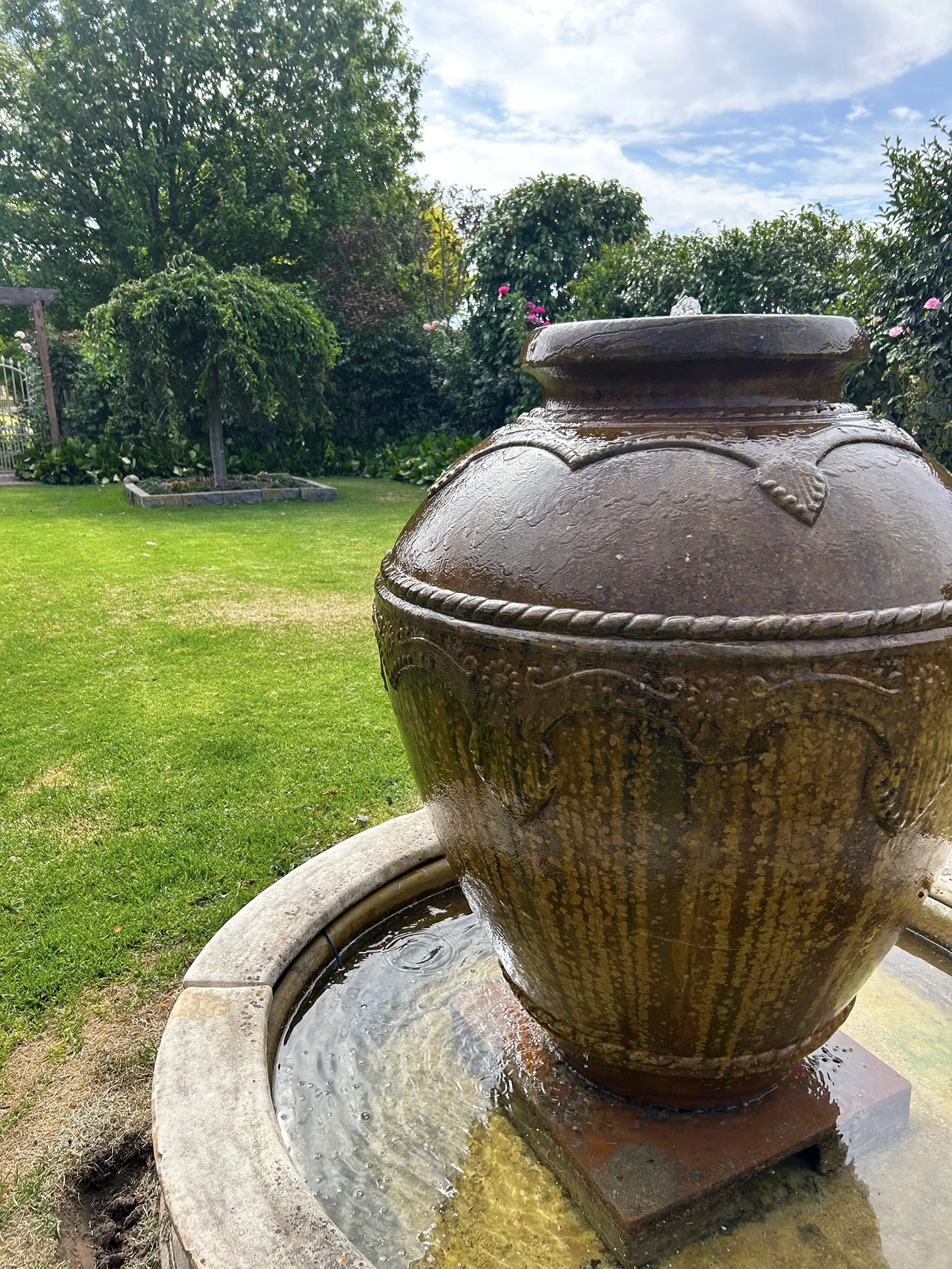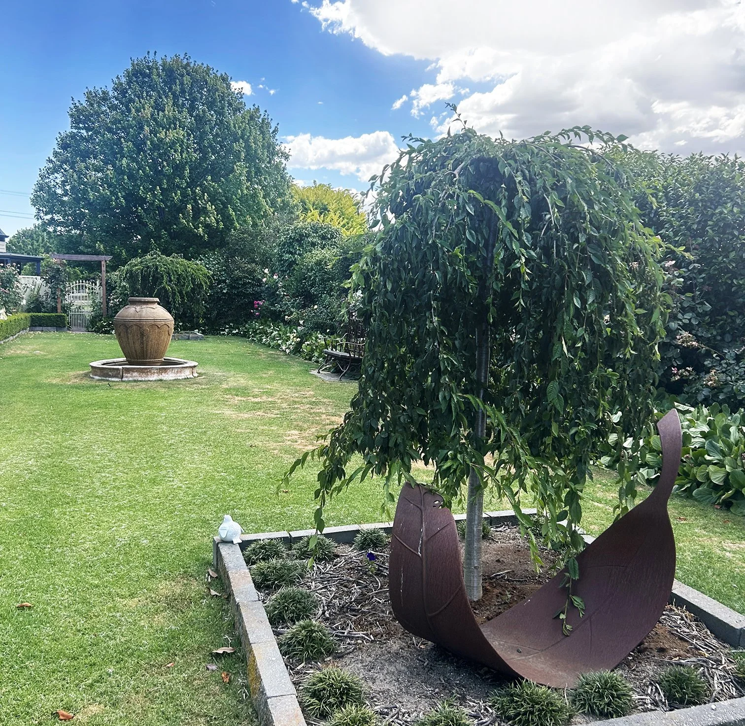There are many interesting garden sculptures and water features, a summerhouse, potting shed, chook house and vegetable garden.