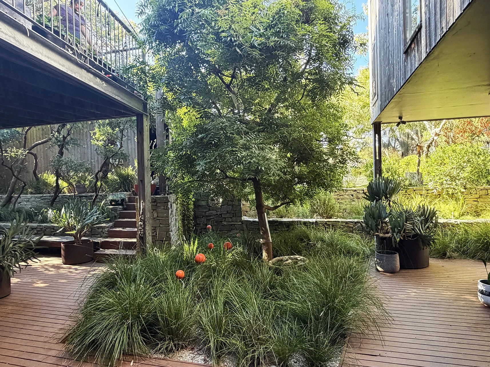 Set amongst mature messmate gums the garden is a model of what can be achieved by retaining existing vegetation and planning a garden and home with minimal impact on the environment.