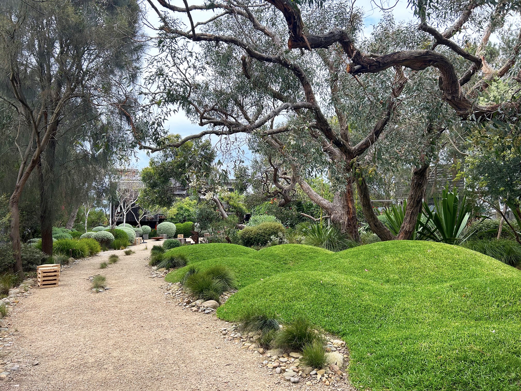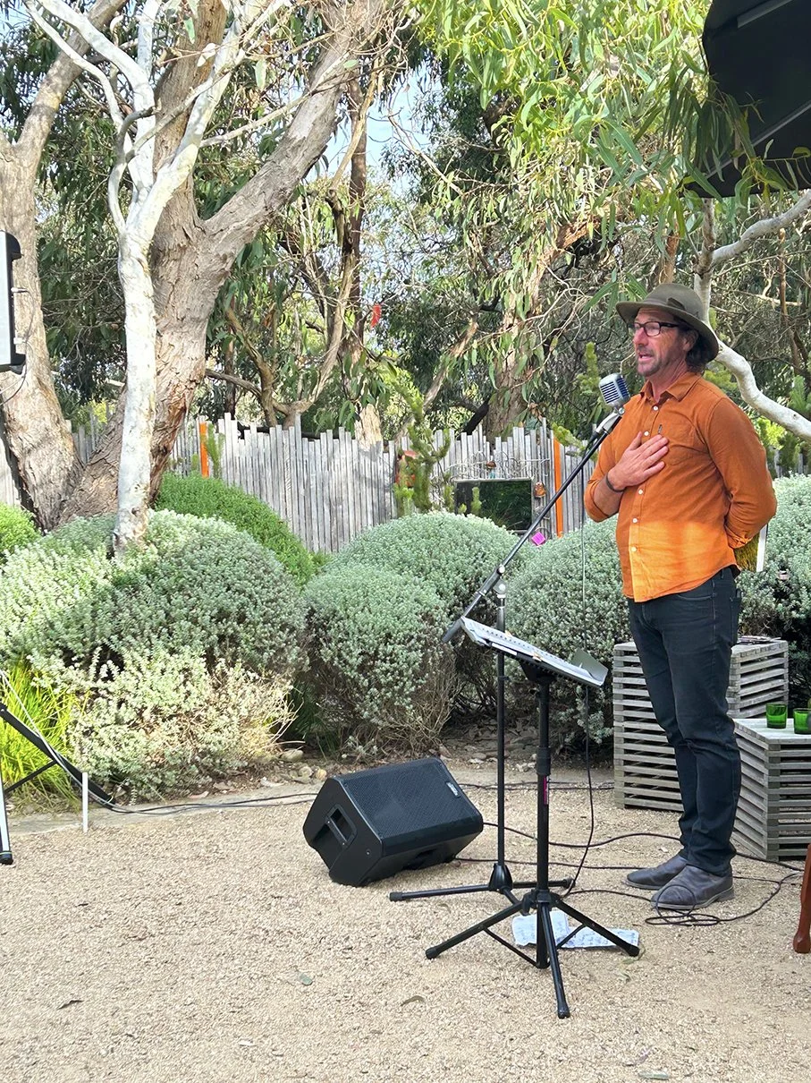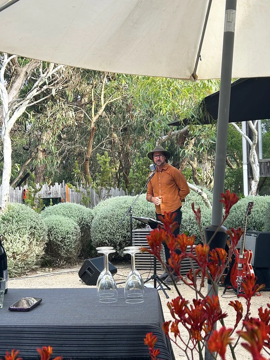 Enjoy a more intimate twilight experience in Peter and Simone Shaw’s garden, Sunnymeade—a coastal Anglesea landscape known for its sculptural messmate gums, sweeping grassy mounds, and carefully curated native plantings that sit gently within the surrounding bushland.